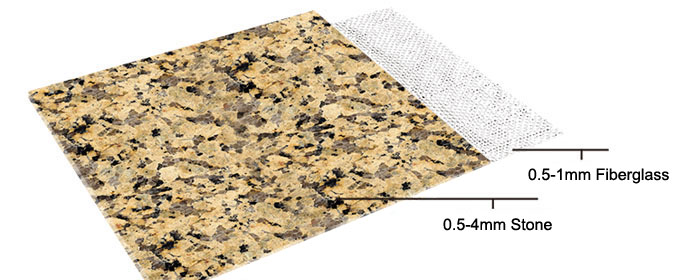 Kema Stone – Ultrathin Stone Veneer is a revolutionary stone product, which is the thinnest 100% natural stone veneer in the world. It is laminated by ultra thin natural stone layer and reinforced by fiberglass backing. It can be gently attached and adjusted to different surfaces, curved or flat. The significance of this feature is that it can be processed as easy as woodskin and cut by portable cutting machine. We custom cut all of the pieces for your project, or provide you with the product to shape yourself.